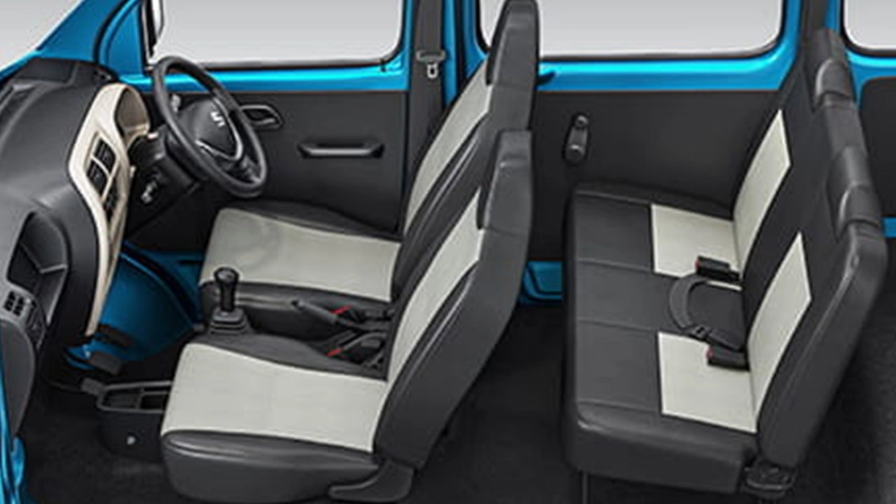 The Maruti Eeco is offered in Starry Blue, Granite Grey, Silky Silver, Fire Red, Sizzle Orange, and Solid White exterior shades.