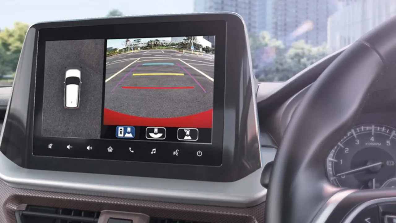 On the outside, the 2022 Maruti Brezza features LED projector headlamps, twin L-shaped LED DRLs, a new grille with chrome inserts, fog lights, contrast-coloured skid plate, new front and rear bumpers, roof rails, new 16-inch dual-tone alloy wheels, blacked-out A, B, and C-pillars, wraparound LED tail lights, Brezza lettering on the boot lid, an integrated spoiler with a high-mounted stop lamp, and a shark-fin antenna.